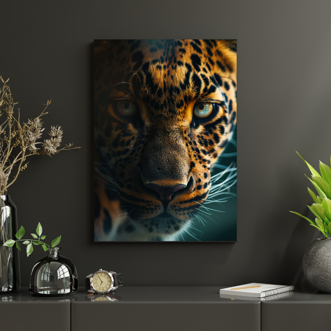 Cette affiche murale met en lumière le regard perçant d’un léopard, capturé en gros plan. Chaque détail du pelage tacheté et des yeux expressifs transmet une impression de force, de calme et de maîtrise.