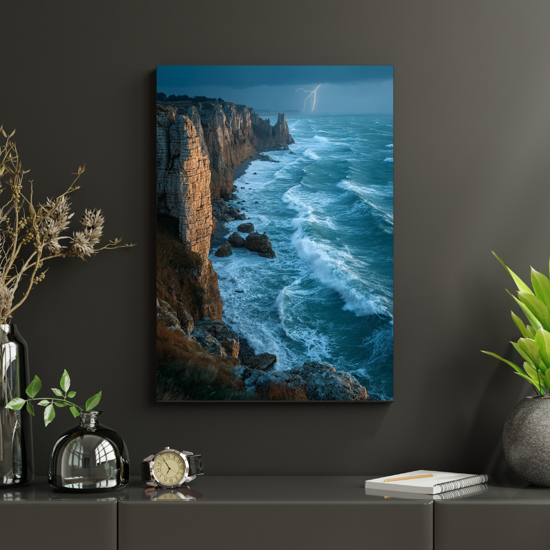 Cette affiche de falaises et de tempête marine apporte une énergie brute et un caractère unique à votre décoration murale.
